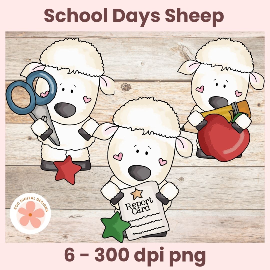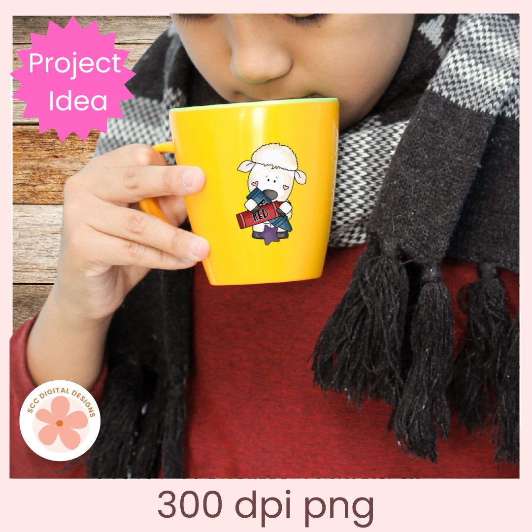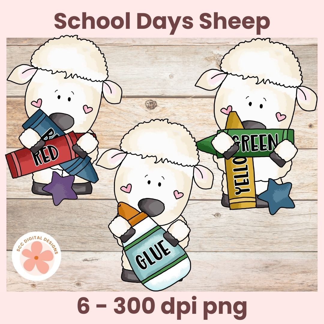 Back to School Clipart Set, Whimsical Sheep, Crayons & Apple Graphics for Scrapbooking & Crafting Projects