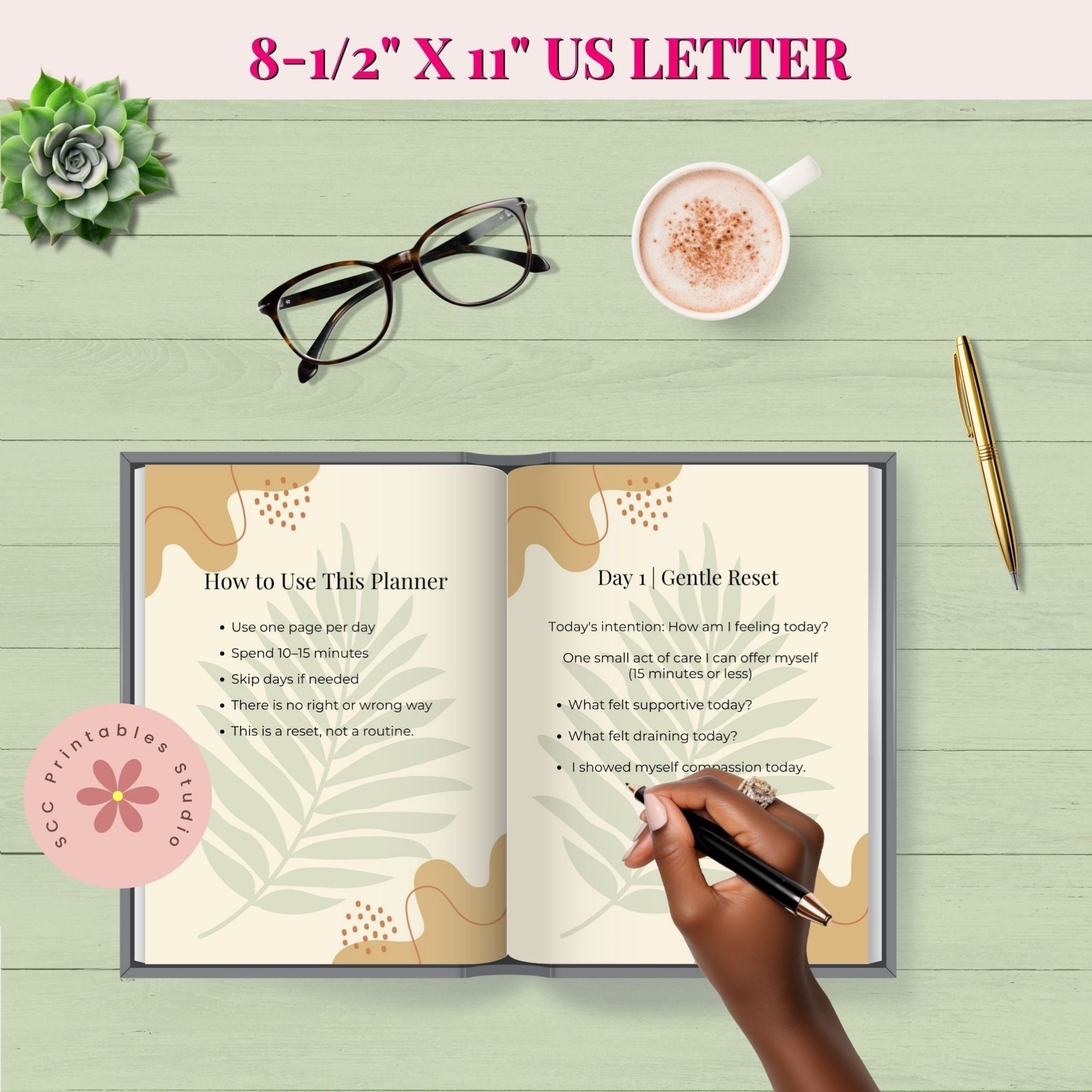A gentle, low-pressure planner designed to guide you through a 7-day emotional reset using short daily prompts.