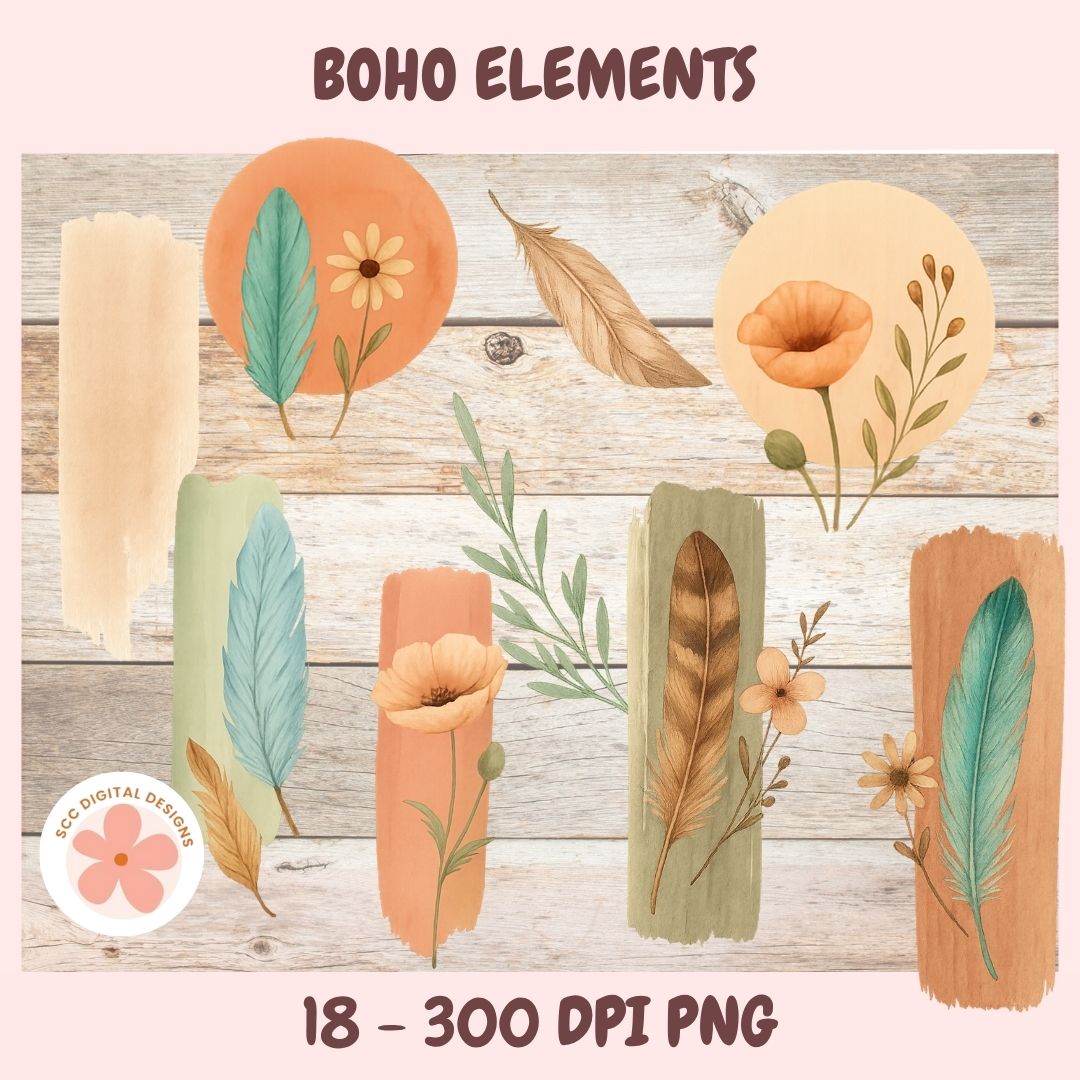 Add a soft, earthy touch to your creative projects with this 18-piece Boho Feather PNG Clipart Bundle. Hand-painted in warm watercolor tones, these delicate feathers and and Earthy botanical illustrations are perfect for junk journals, scrapbooking, card making, collage art, planners, tags, and all kinds of printable or digital crafts.