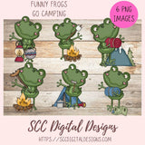 Camp Life PNG, Funny Frogs Camping Clipart with Sleeping Bag, Tent, Campfire and Smores, Frog Clip Art for Mugs, T-Shirts for Mom