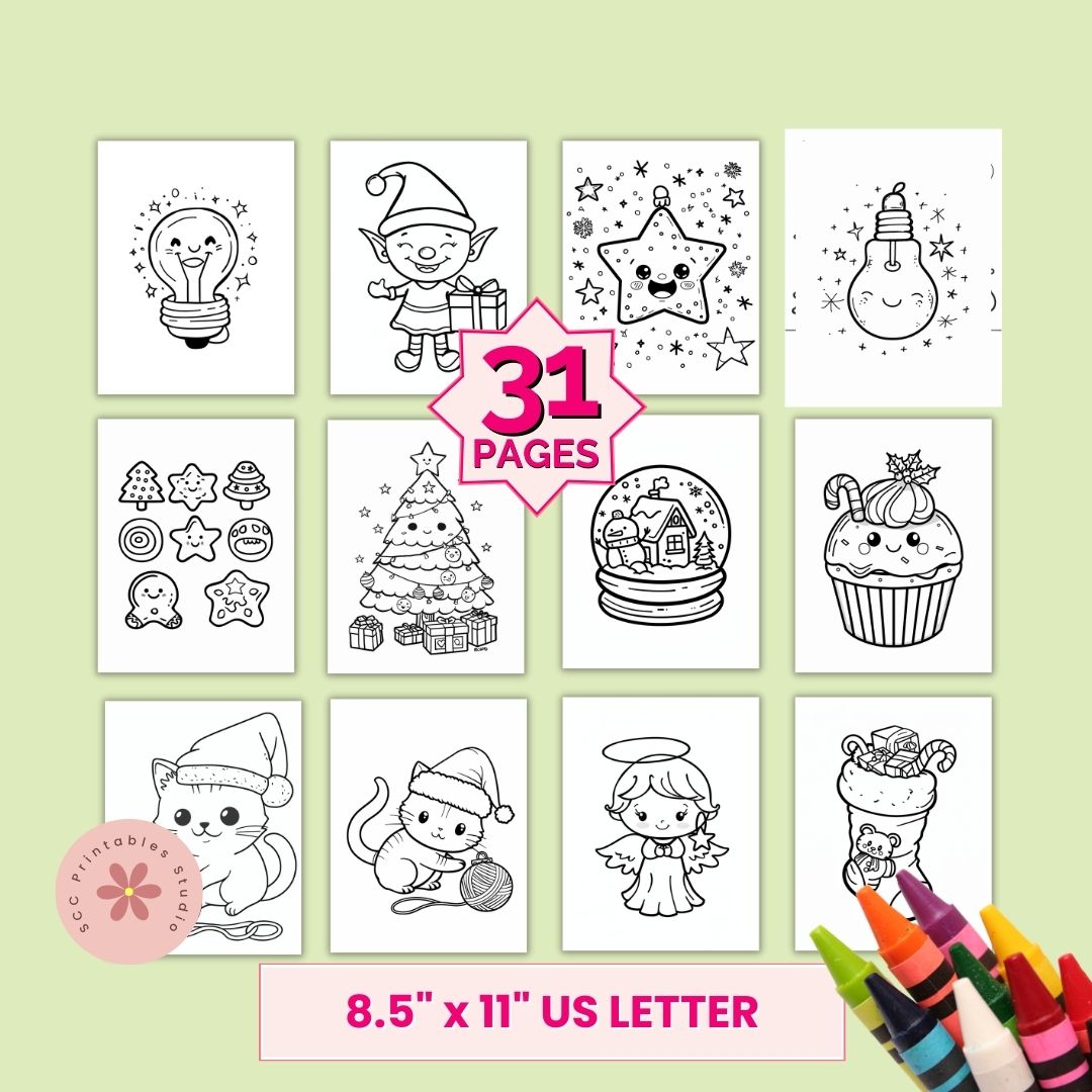 Christmas Coloring Book for Kids – 31 Kawaii Holiday Printable Pages for Fun Family & Classroom Crafts