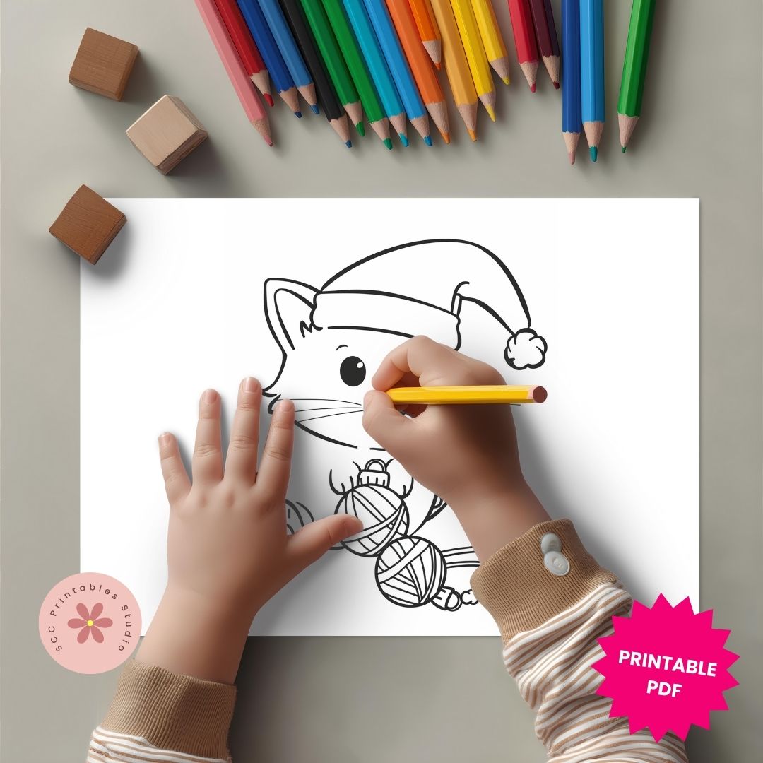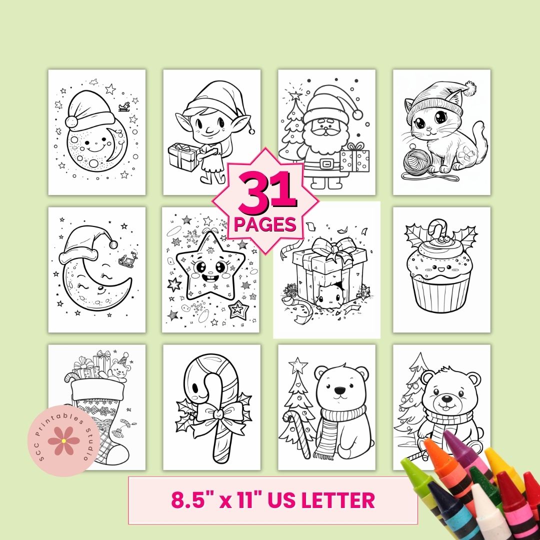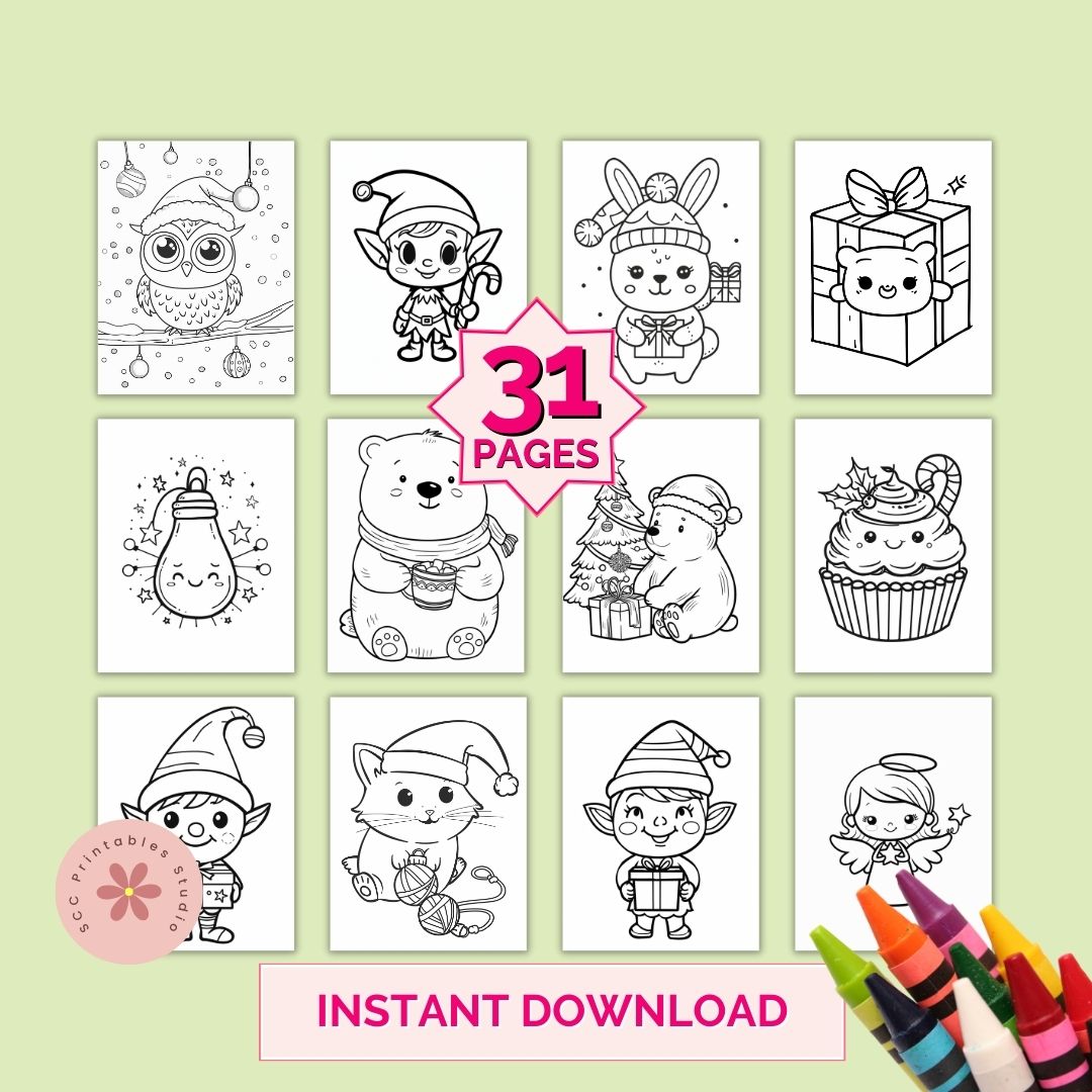 Christmas Coloring Pages for Kids, Kawaii Animal Holiday Activity Sheets, Printable Christmas Worksheets for Classroom & Homeschool Fun
