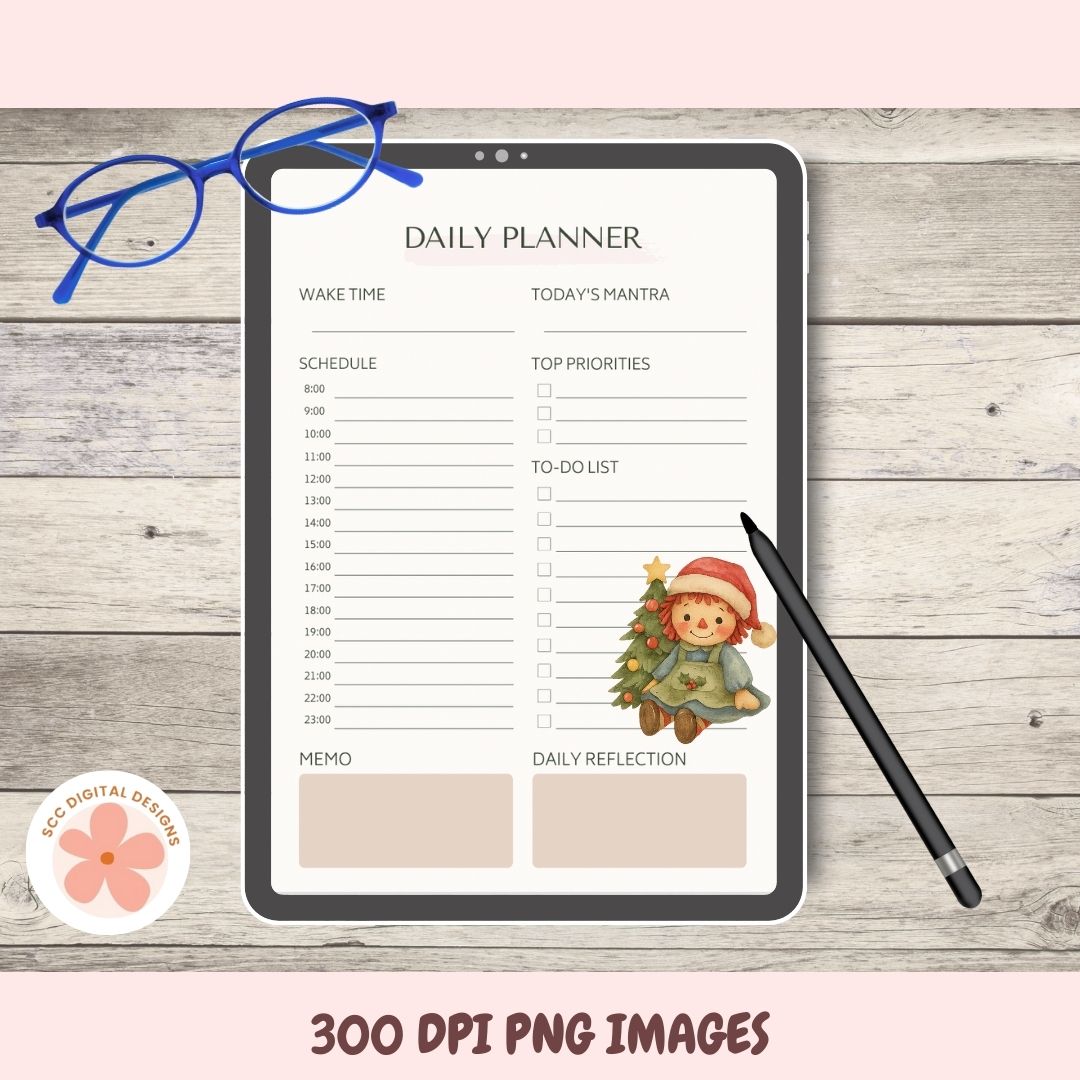 Christmas Rag Doll PNG Clipart, Primitive Andy & Annie Holiday Graphics, Gingerbread Cookies, Trees & Presents PNG for Stickers, Shirts & Crafts