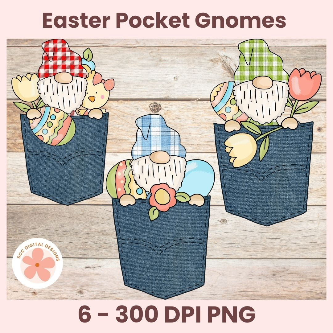 Our adorable Easter Clipart feature Blue Jean Pocket Gnomes, cute Bunnies, and pastel-colored eggs! These 300 dpi png images are perfect for your all of crafting needs.