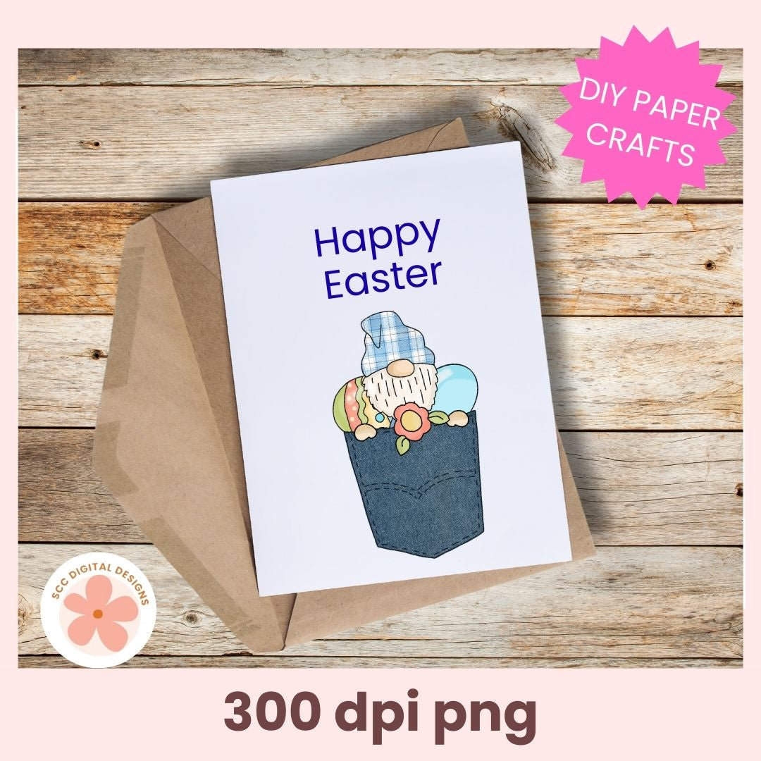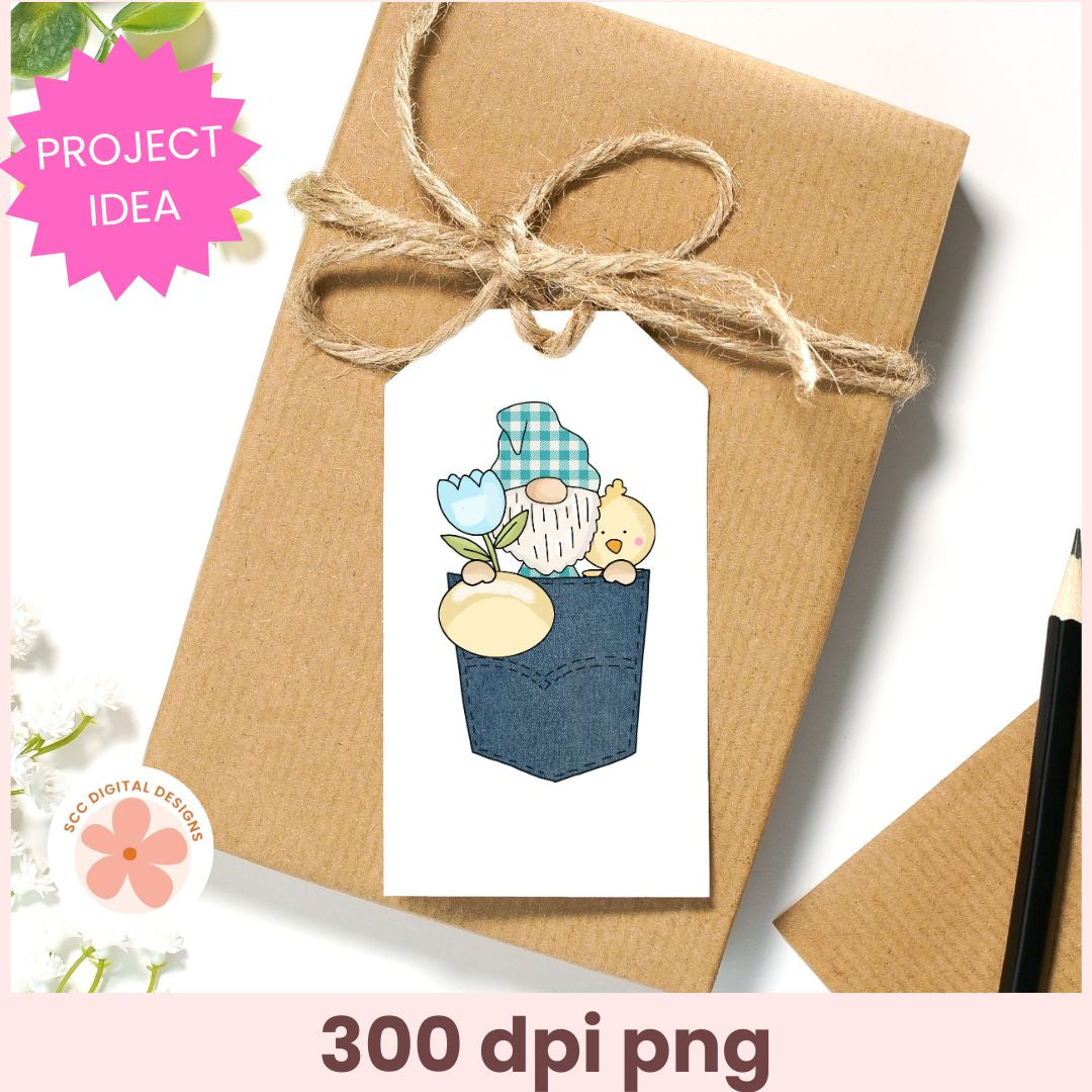 Easter Blue Jean Pocket Gnome Clipart Bundle – Pastel Eggs, Bunnies & Spring Florals PNG for Stickers, Scrapbooking & Paper Crafts