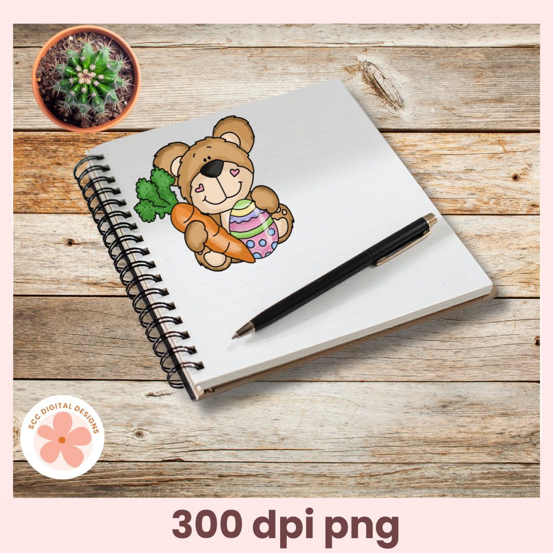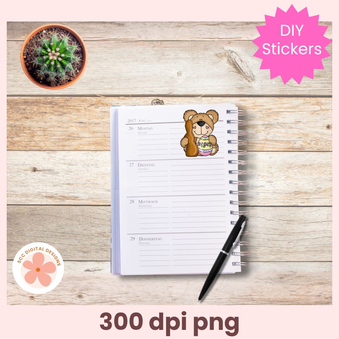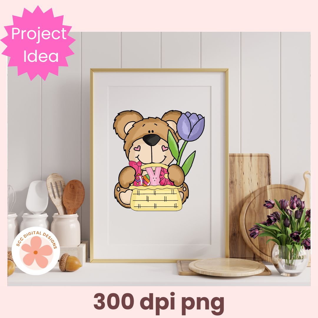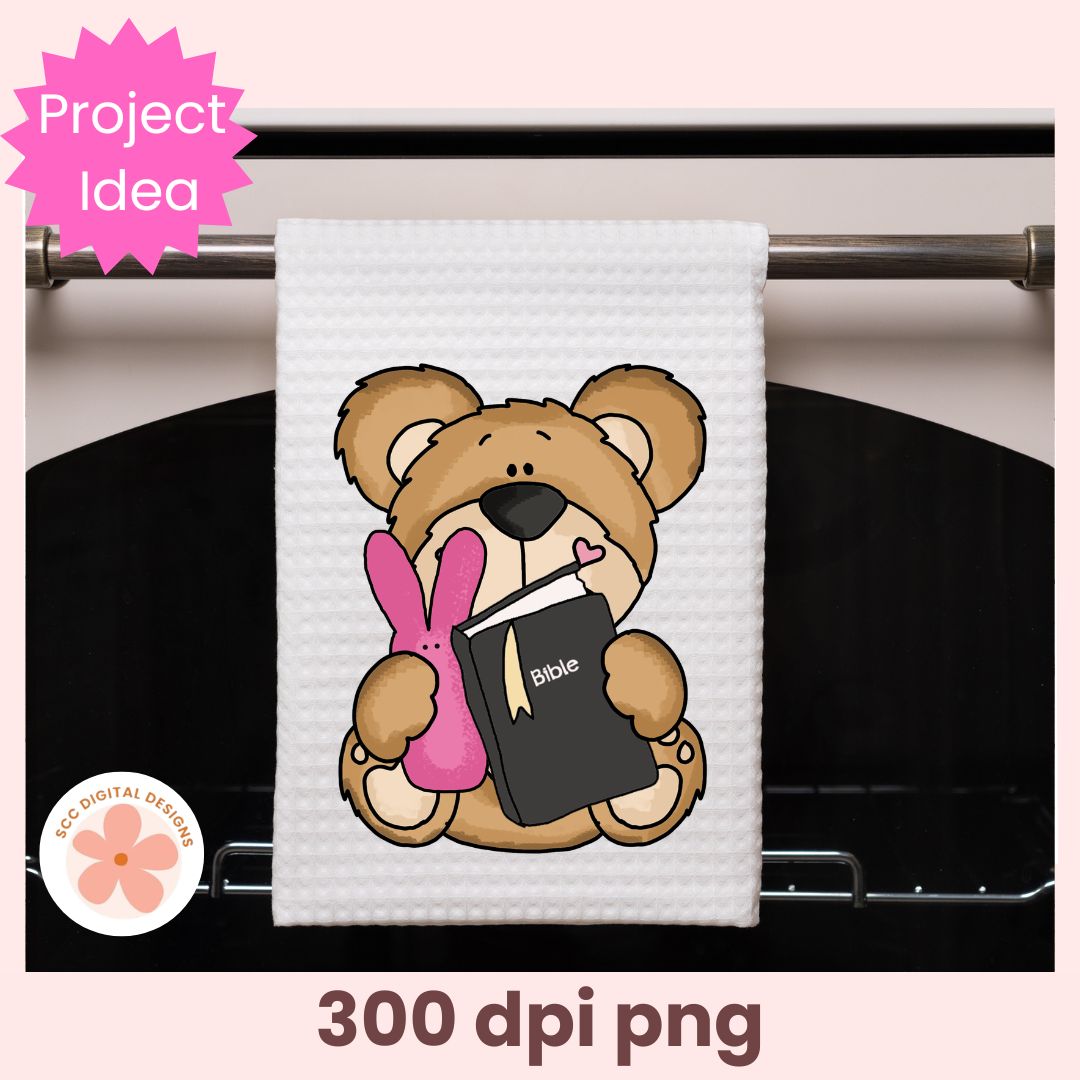 Easter Teddy Bear Clipart PNG Bundle – Whimsical Bear with Easter Basket, Pastel Eggs & Bible Illustration for Scrapbooking, Stickers & Paper Crafts
