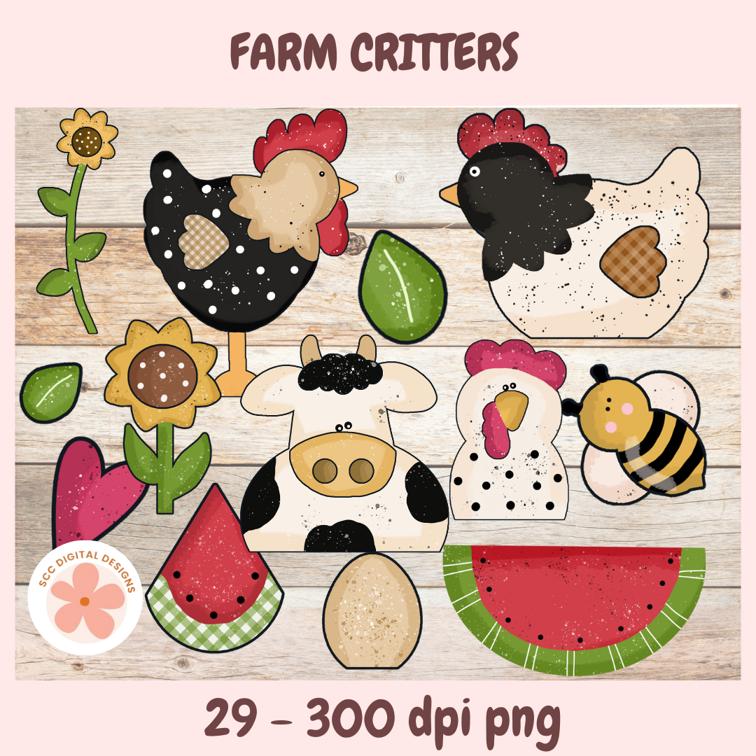 Our adorable farm animal png collection features a cute cow, chickens, pig, dog, sunflowers, fruits, chicken egg, and more! These clipart images are adorable printables and digital stickers. Use these charming designs for customizing mugs, t-shirts, and more for kids.