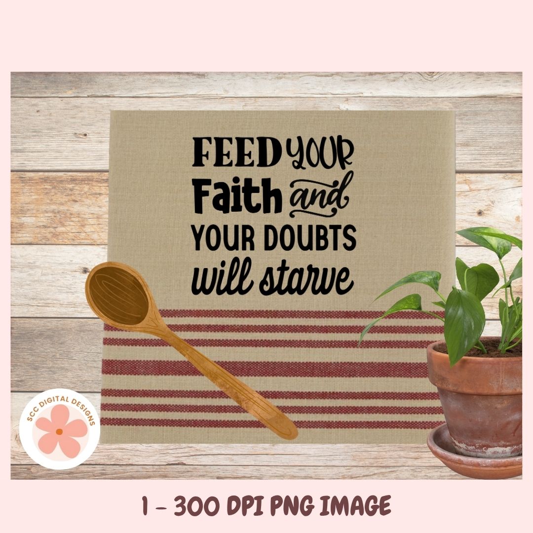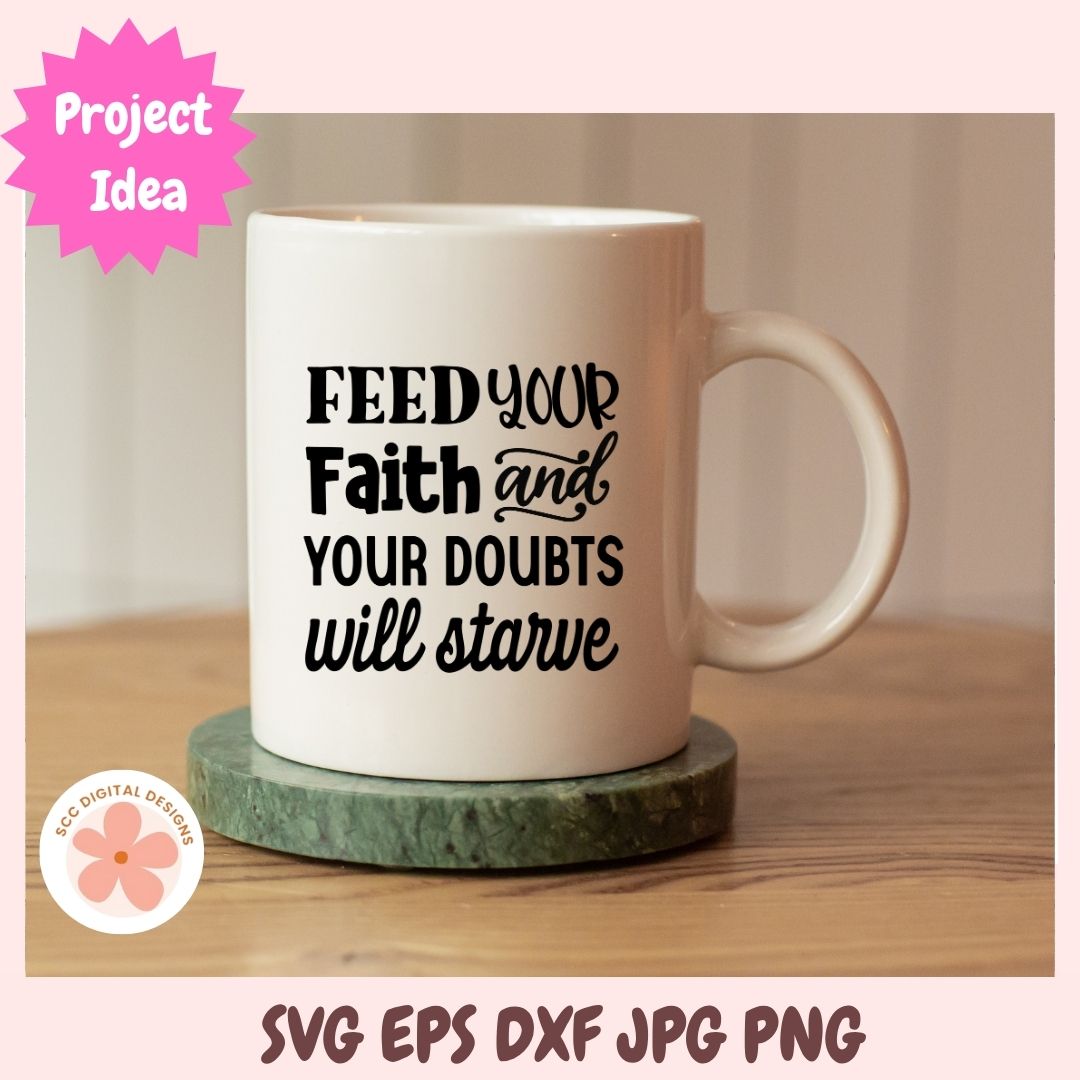 Let your creativity shine with this inspiring Christian design — a daily reminder that when you feed your faith, your doubts will starve.