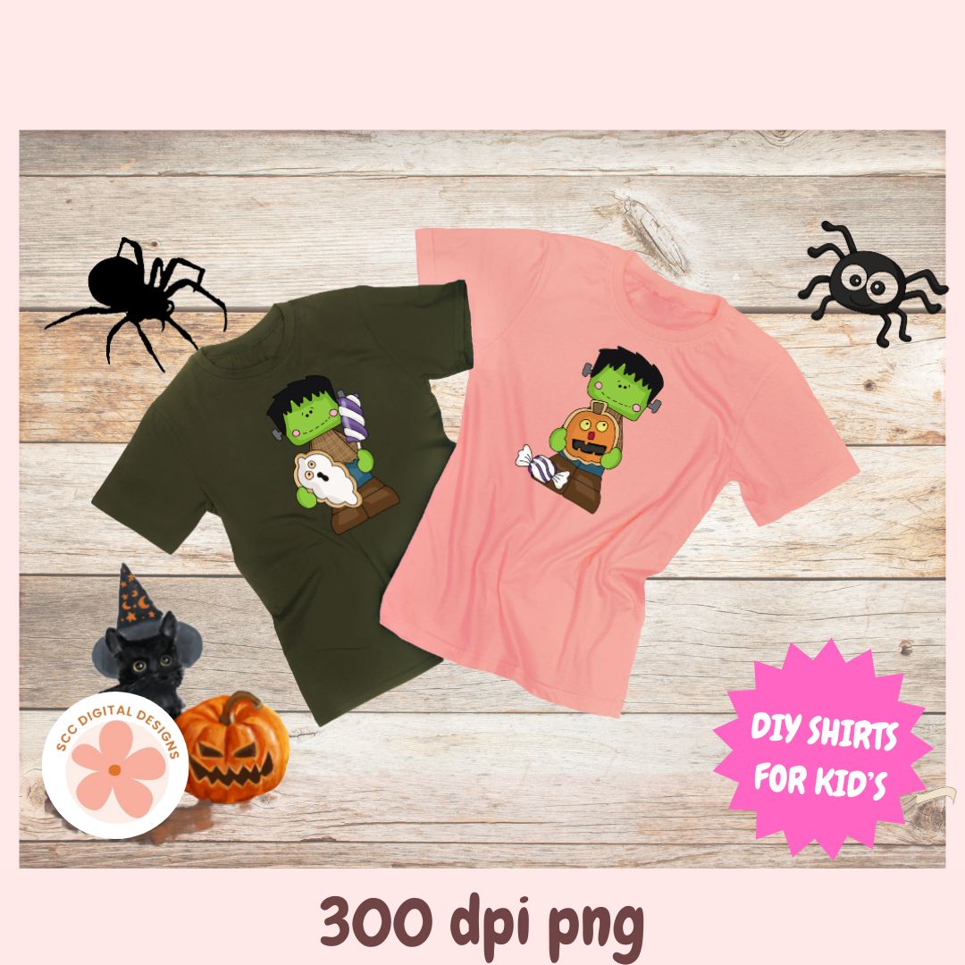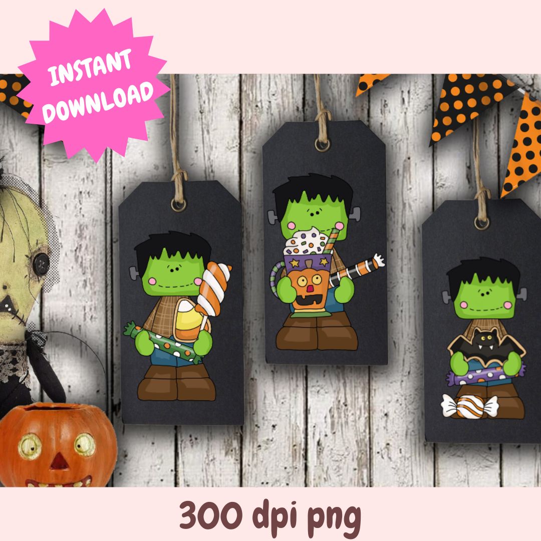 Little Frankie Trick or Treat Clipart Set, Cute Frankenstein PNGs, Halloween Candy Digital Download for Crafts, Stickers & Sublimation