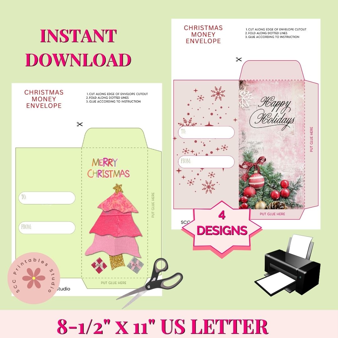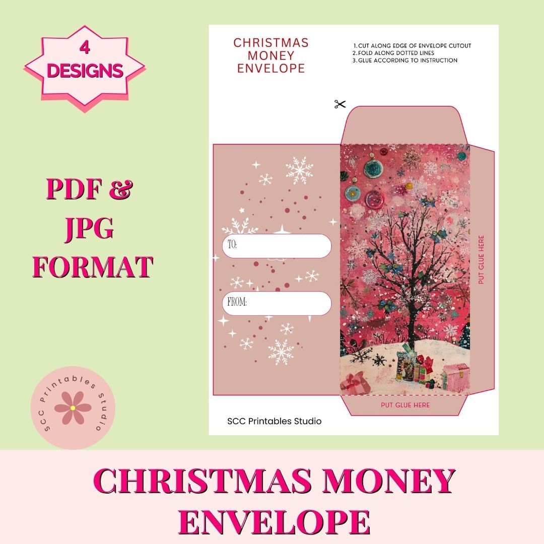 Add a touch of vintage sparkle to your holiday gifting with this elegant Pink Christmas Cash Envelope set featuring a shimmering turquoise holiday tree. Perfect for gifting money, checks, or gift cards in style, this printable envelope design blends retro charm and festive glam for the perfect stocking stuffer presentation.
