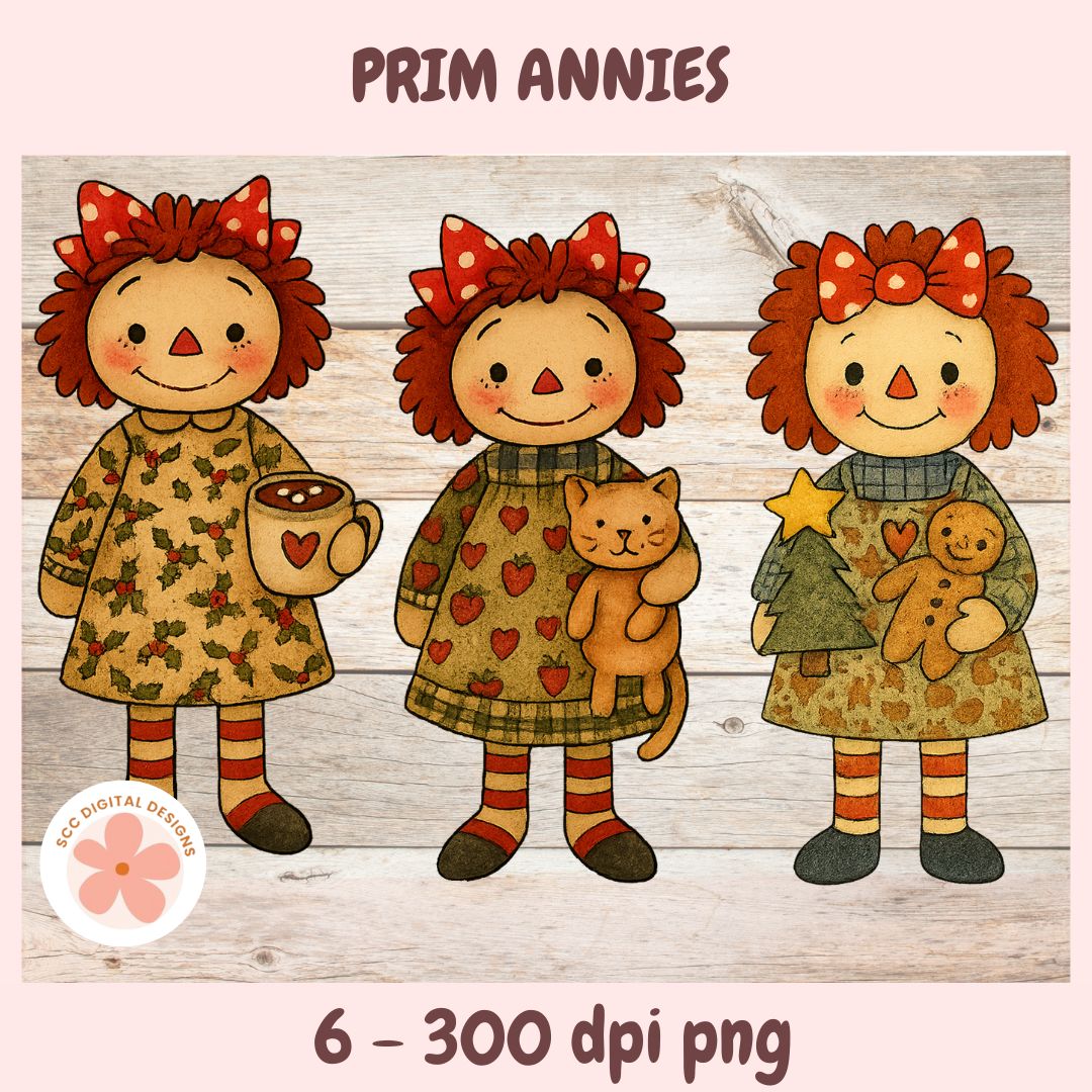 Prim Rag Doll Annie PNG, Vintage Primitive Doll Clipart, Country Folk Art & Rustic Boho Sublimation Design for DIY Crafts