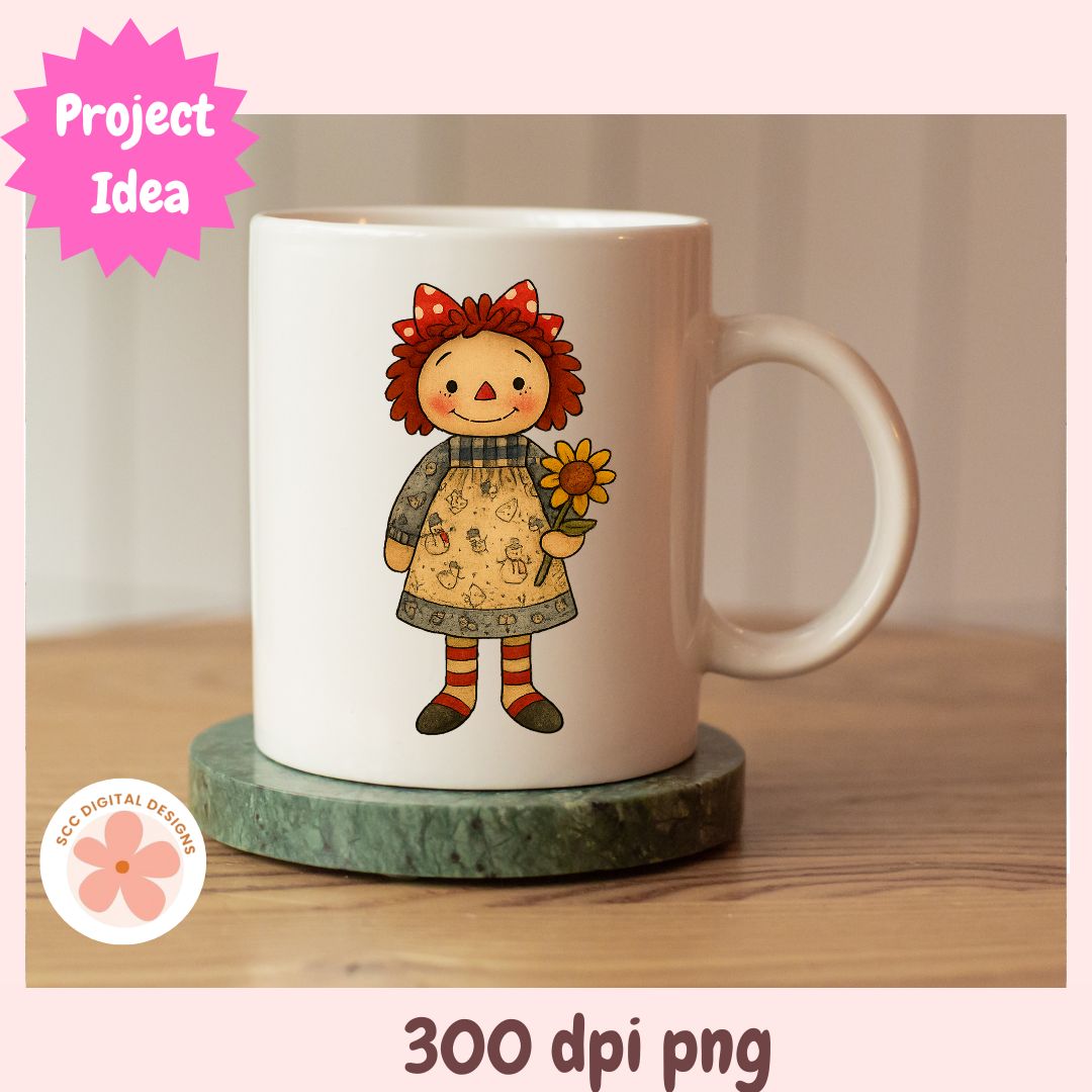 Add a touch of nostalgic charm to your creative projects with this Primitive Rag Doll Annie Clipart — where country coziness meets digital design.
